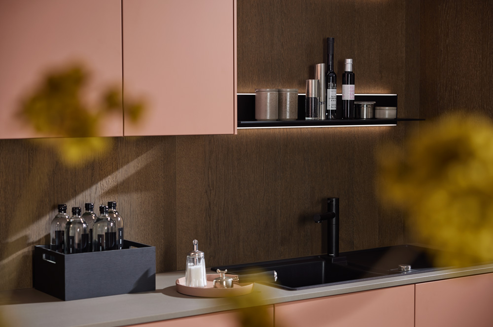 The Pronorm X-line Handleless kitchen has the same precision German-engineering, sleek lines and minimal design as the Proline and Y-Line but comes with a stainless-steel rail below the worktop which is available in five different colours to allow for even more individuality.