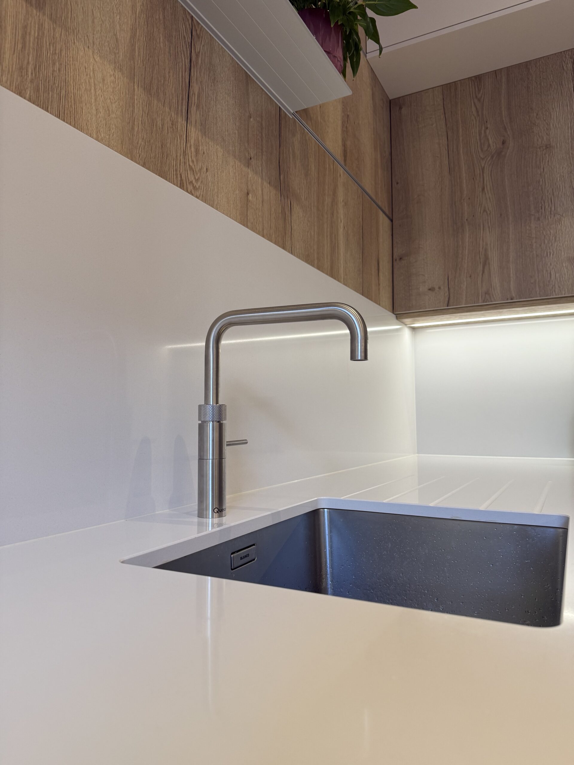 Everyday functionality was carefully integrated into the design, including a Quooker boiling water tap, adding instant convenience without compromising on style.