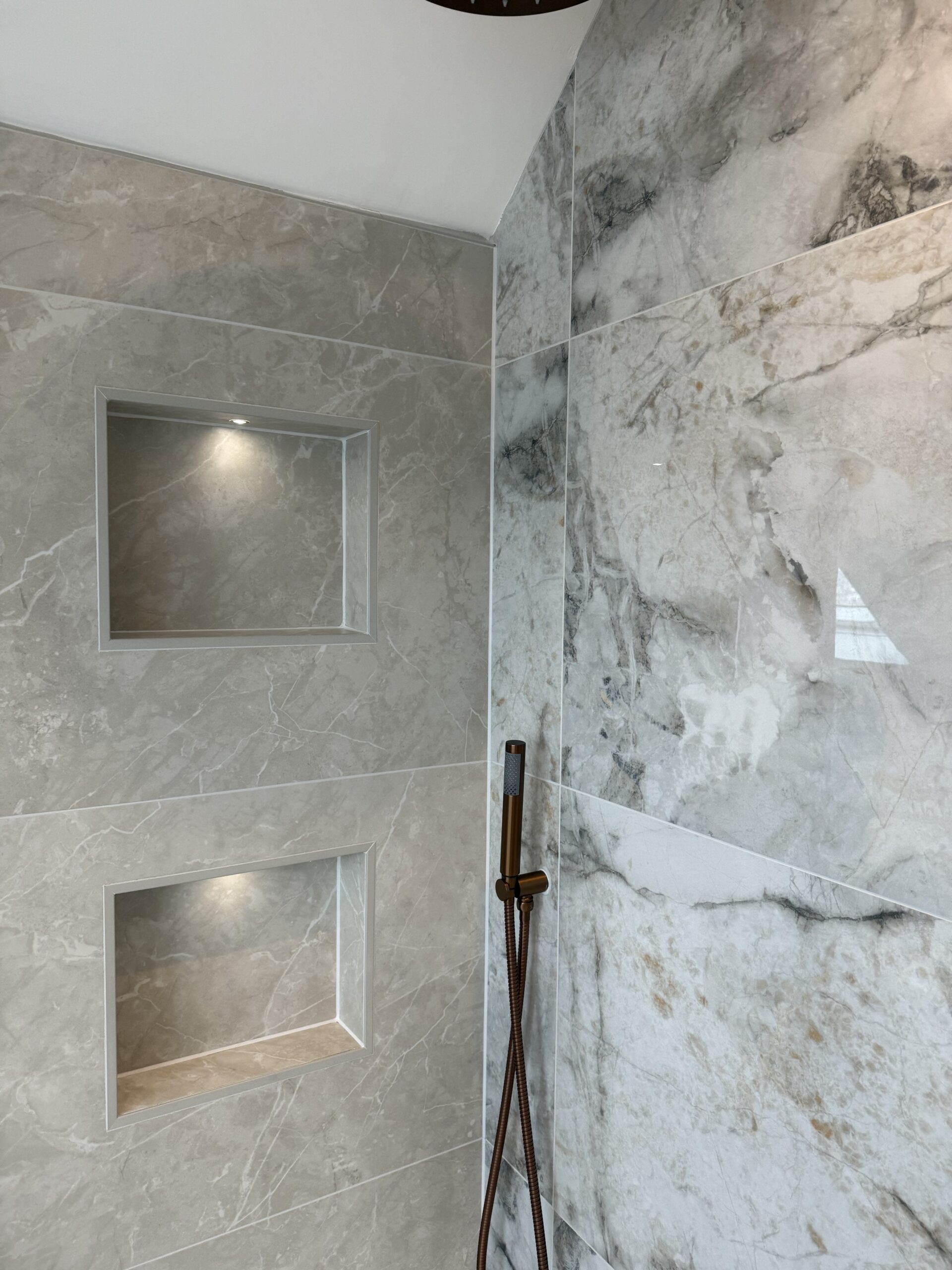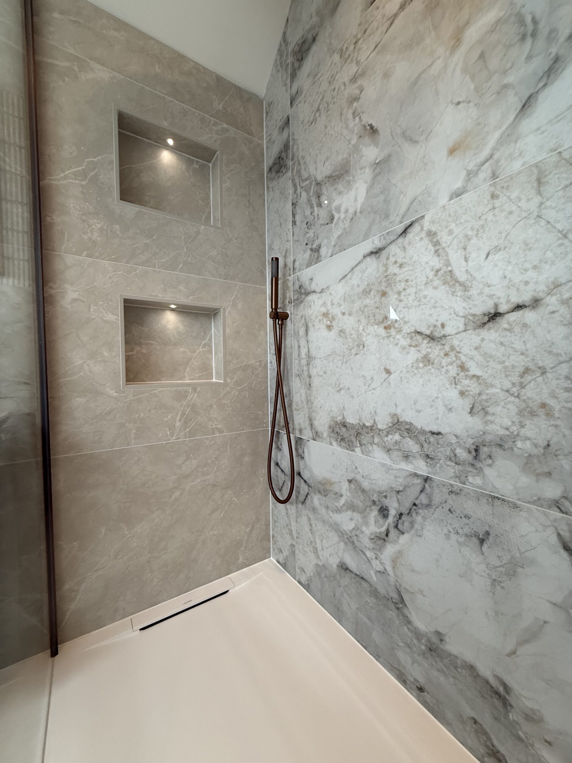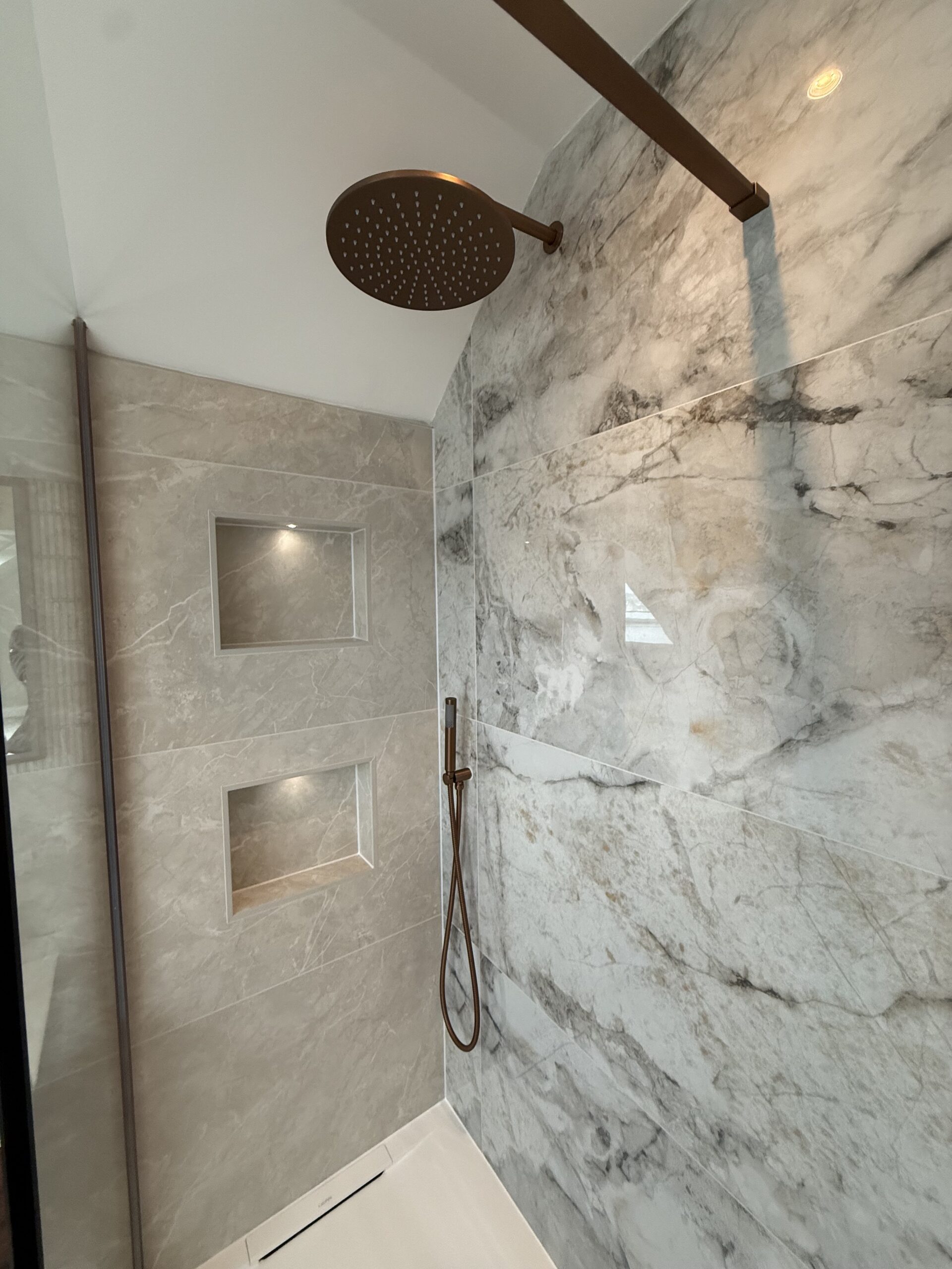 The project included a spacious first floor family  bathroom, three individual en-suite  bathrooms, and a ground floor shower room. Each space was thoughtfully designed to suit its setting within the property while maintaining a consistent level of quality, finish, and functionality across all five bathrooms.