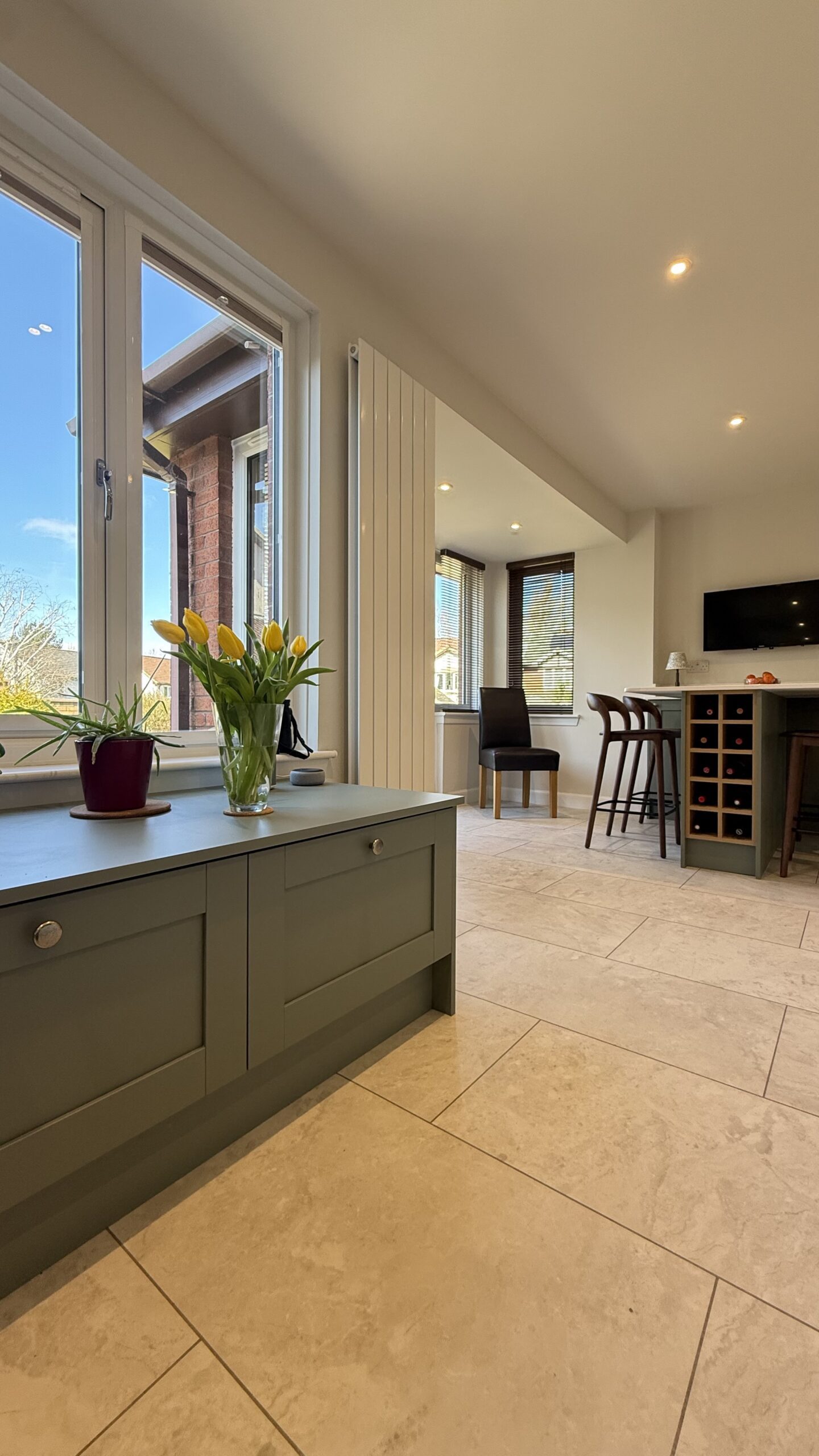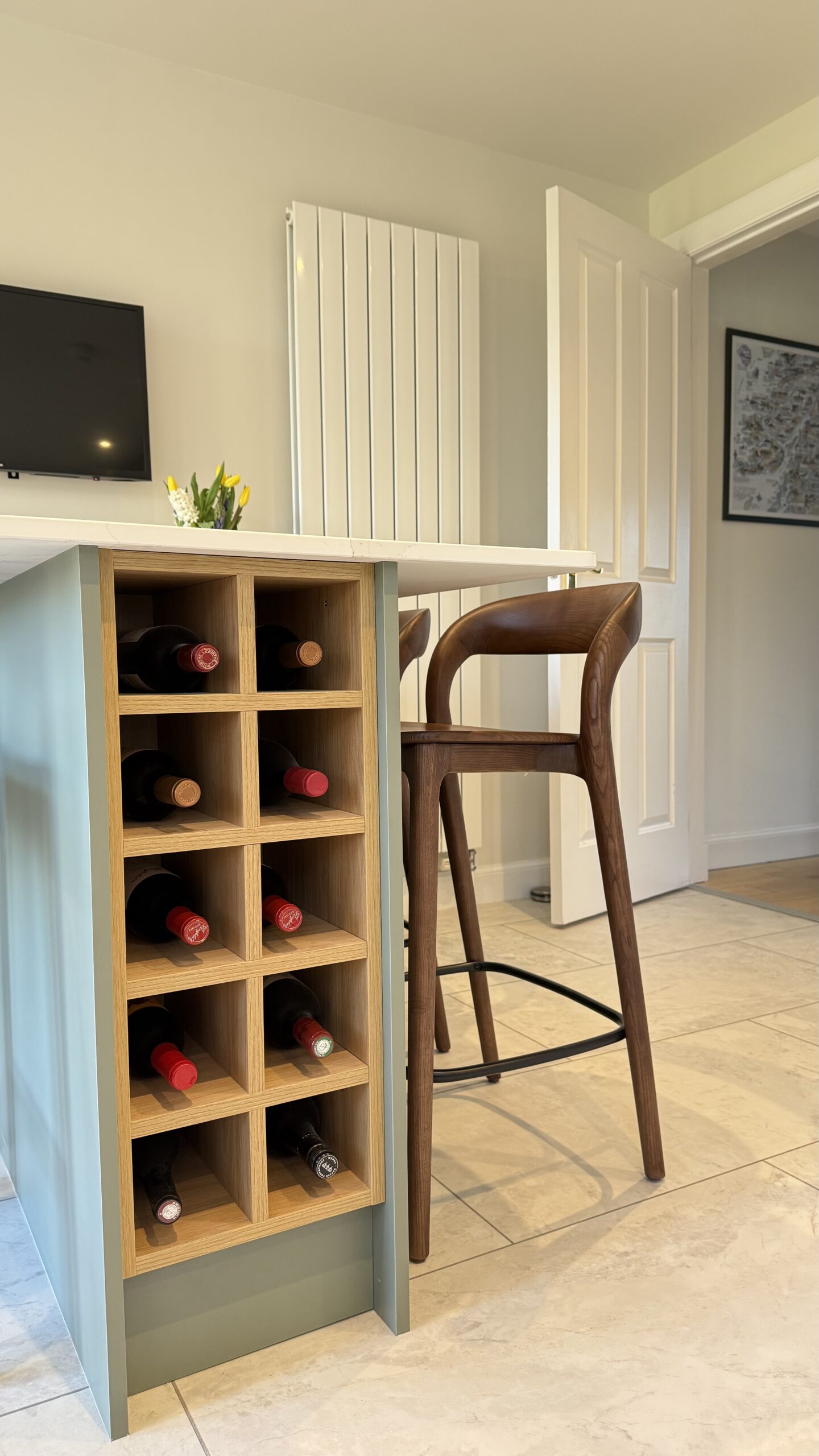 The layout has been carefully planned to maximise both functionality and flow. A standout feature of the design is the peninsula unit, which not only helps to define the space but also incorporates built-in wine storage, creating a sociable focal point that’s perfect for entertaining.