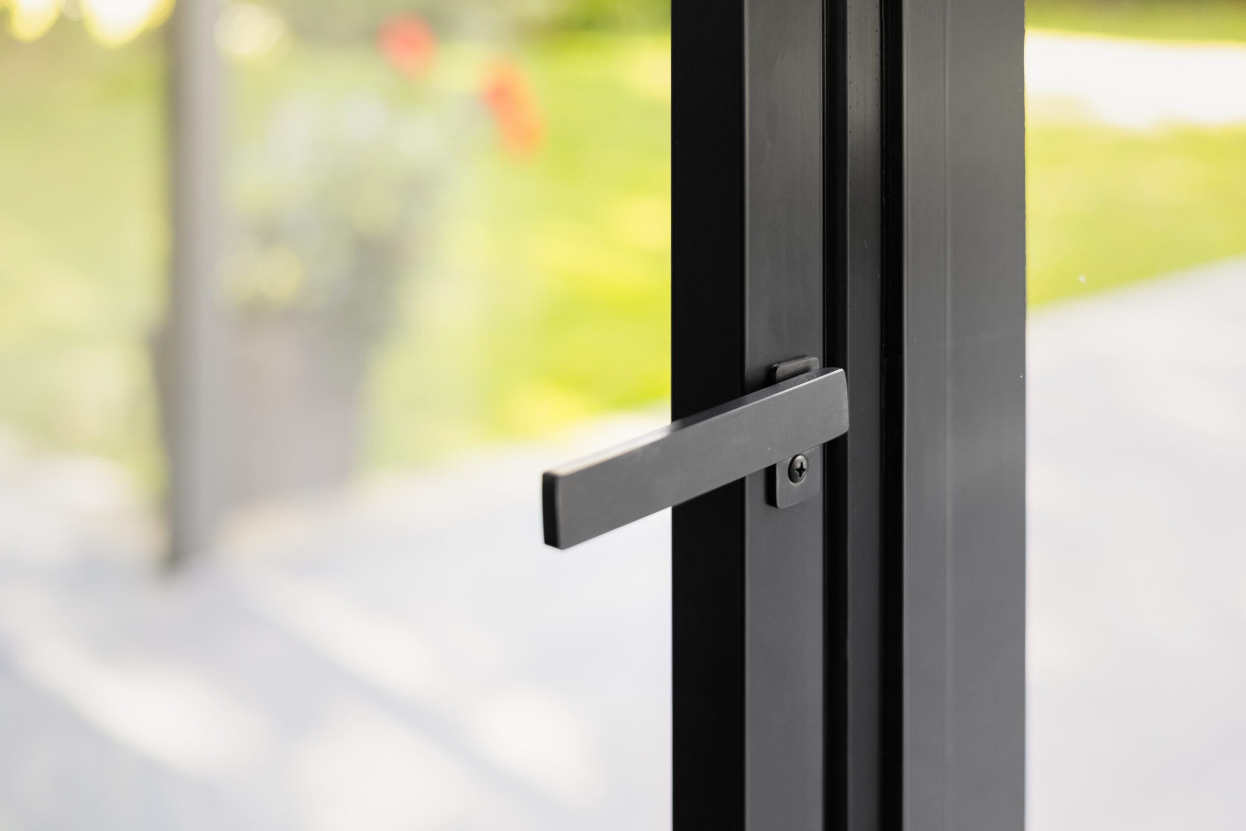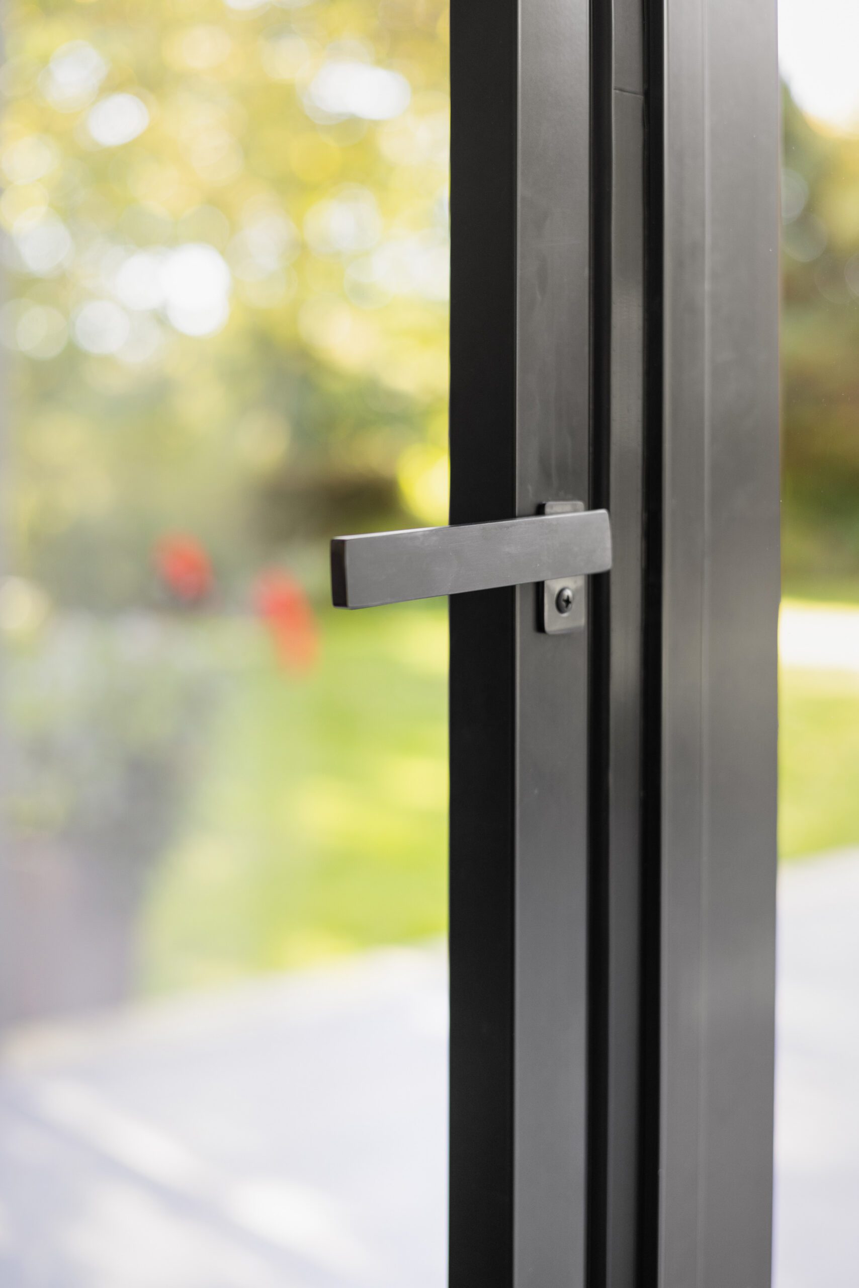 Complementing the sliding doors, aluminium windows were installed throughout the home, bringing consistency to the overall design while maximising natural light. A Spitfire aluminium pivot front door completes the entrance, adding a bold architectural statement and reinforcing the contemporary aesthetic.