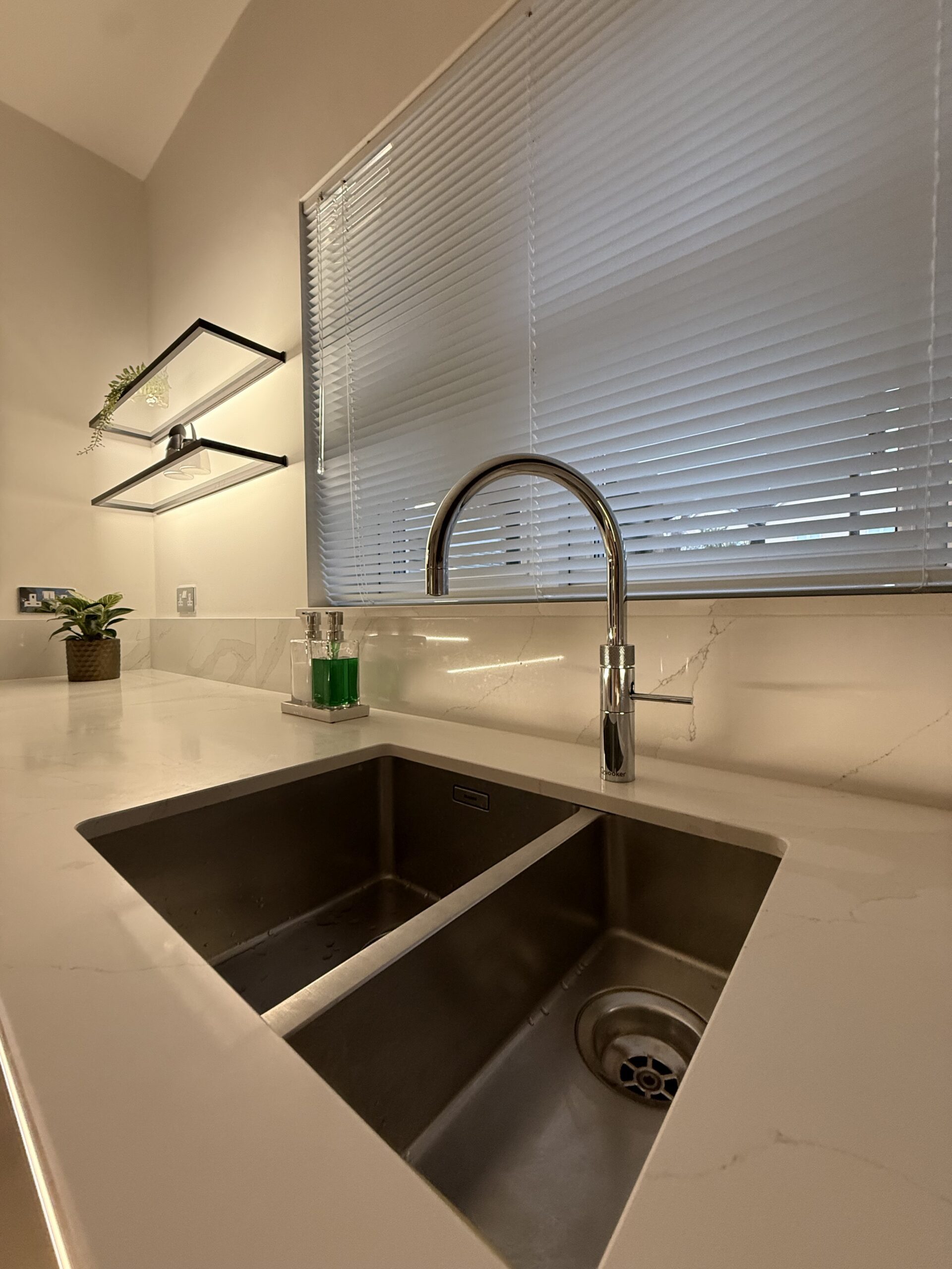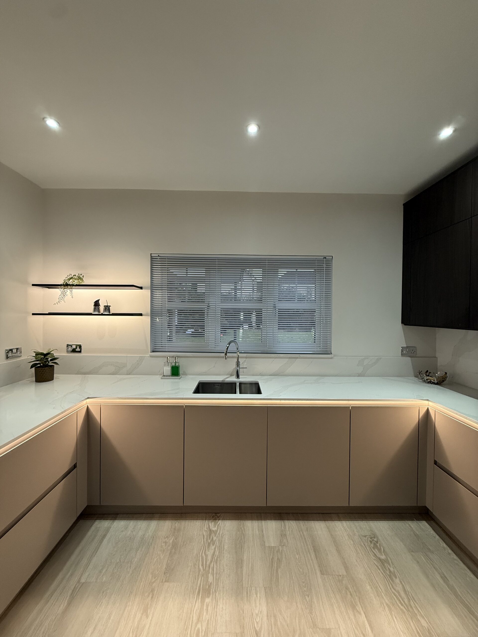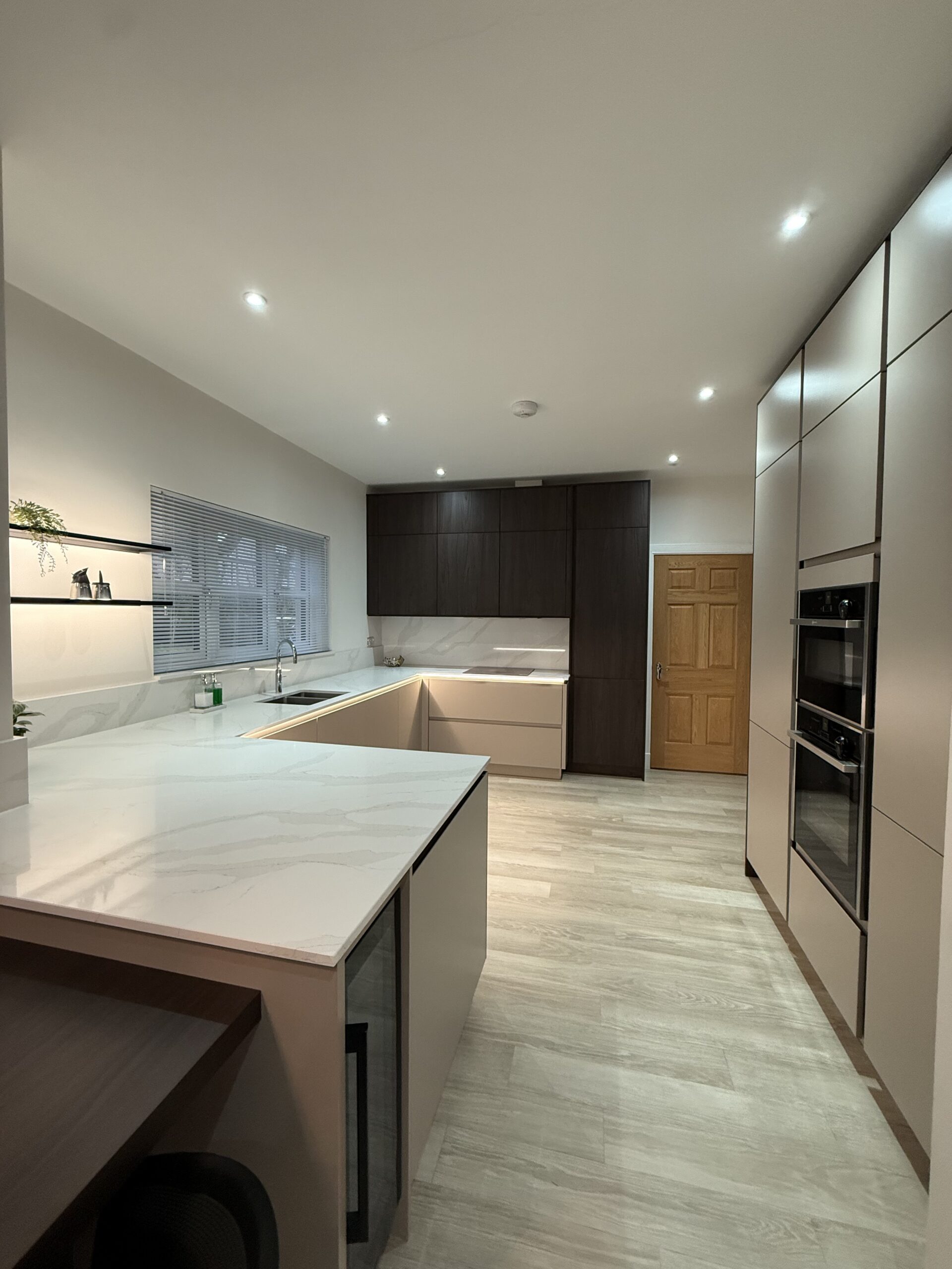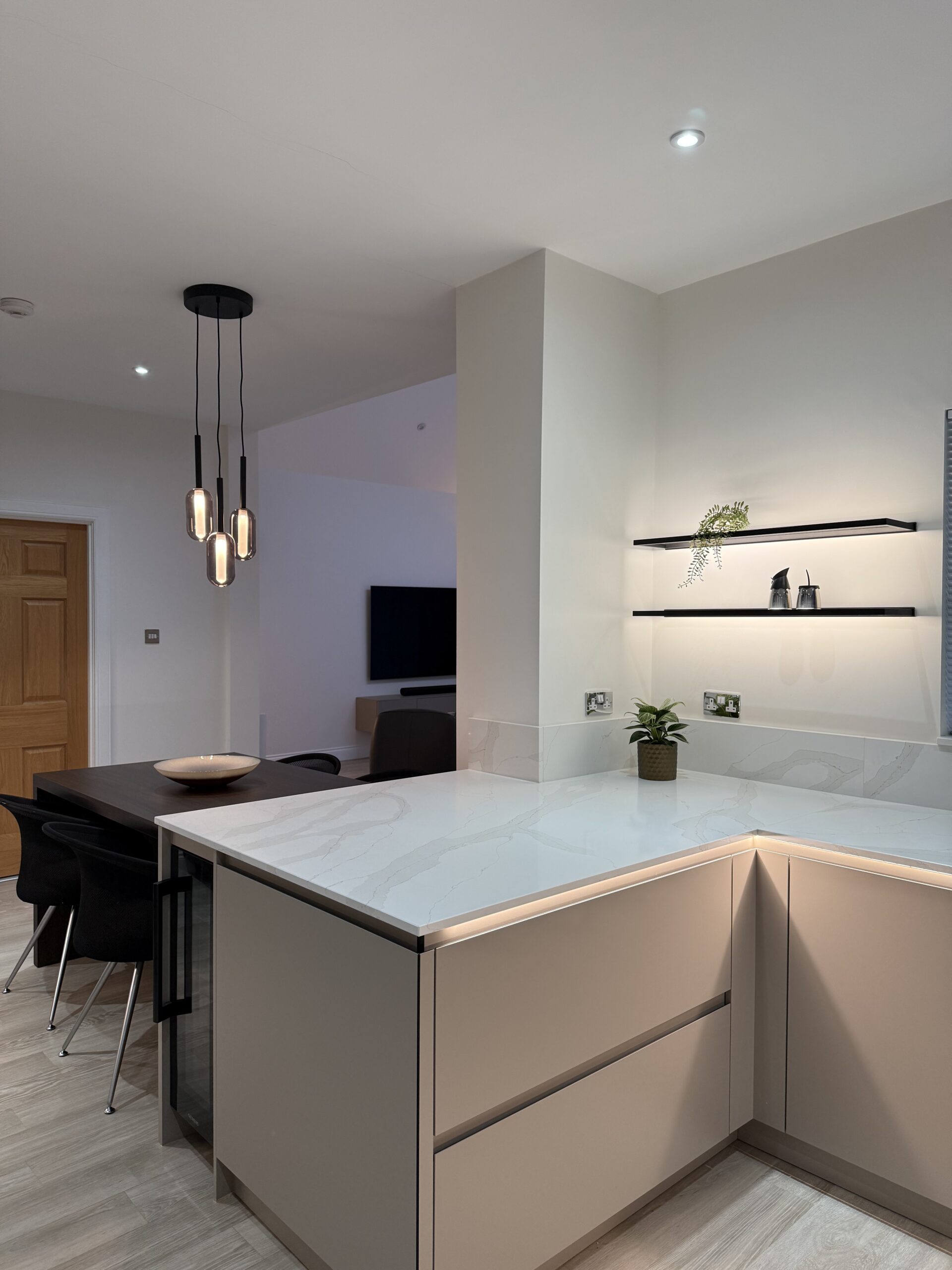 Completed with quartz worktops and a carefully planned layout, this West Lothian kitchen is a perfect example of how thoughtful design, premium materials and intelligent lighting can transform a space into the heart of the home.